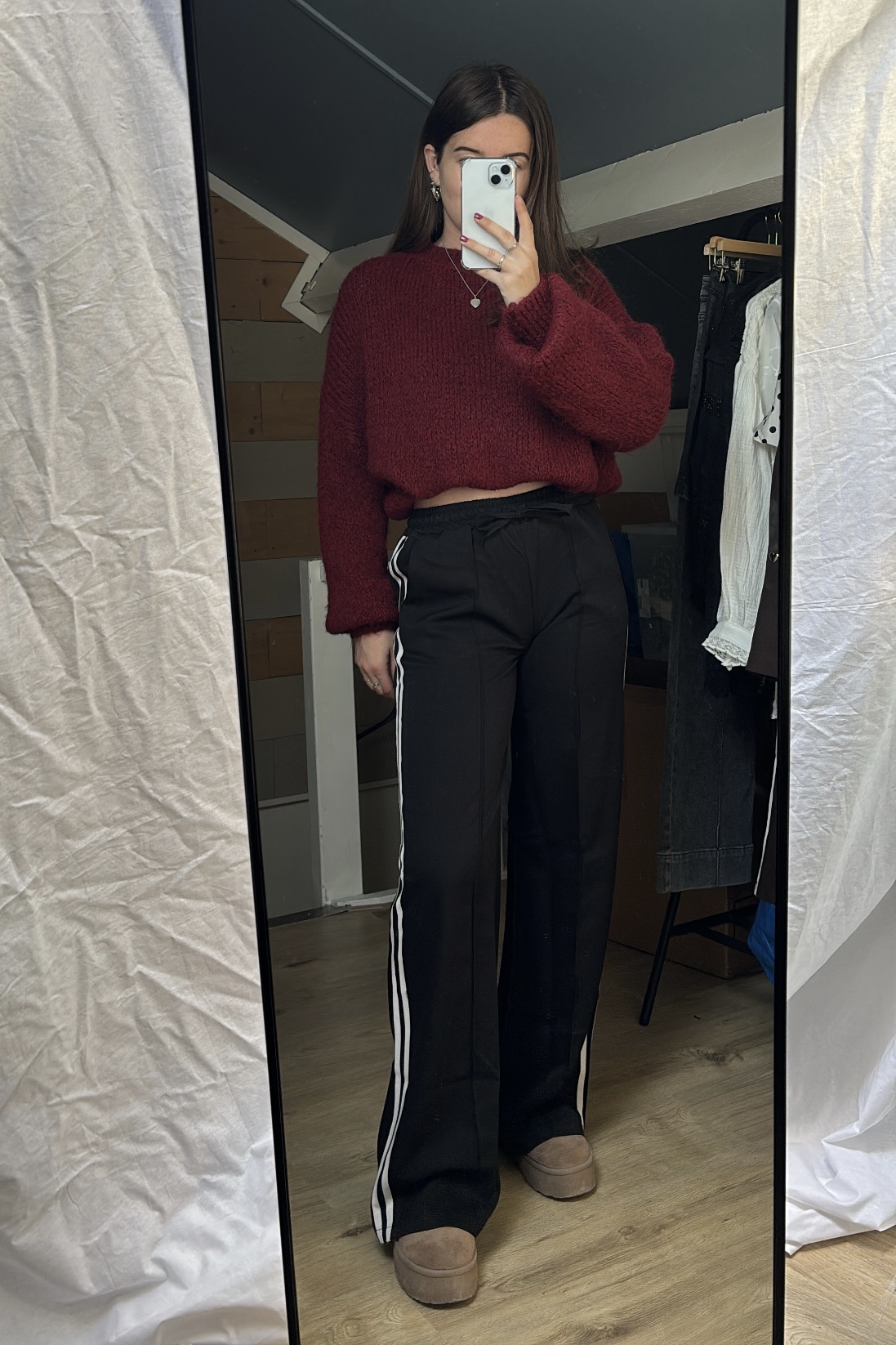 • Wide leg broek met strepen op de zijkant